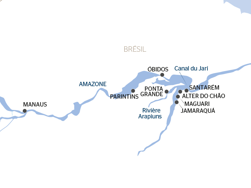 Depuis Santarem, la perle du Tapajos jusqu’à la rencontre des eaux de l’Amazone et du Rio Negro, à Manaus, vous explorerez la région à bord d’embarcation privative, guidés par des experts passionnés. Au programme : rencontres humaines, rituels nocturnes, balades en forêt primaire, et observation privilégiée de la biodiversité amazonienne.