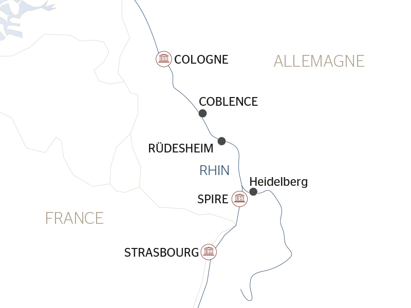 Possibilité de transfert(4) en autocar de Strasbourg à Cologne. Embarquement à 18h. Présentation de l’équipage et cocktail de bienvenue. Départ en navigation dans la nuit vers Coblence.